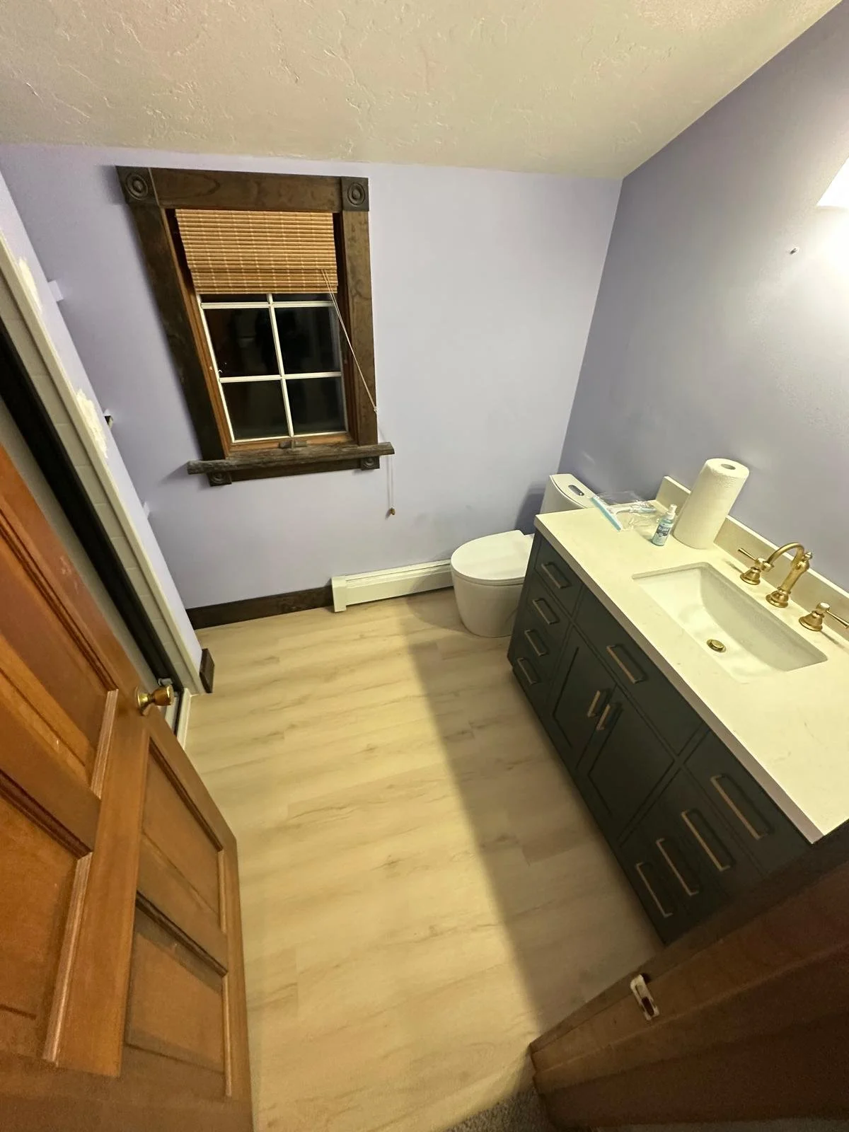 The final stage focuses on completing the bathroom with new flooring, vanity installation, toilet placement, and trim work. Lighting, accessories, and finishing touches are carefully installed to bring the space together. The result is a clean, functional bathroom designed for both comfort and durability.